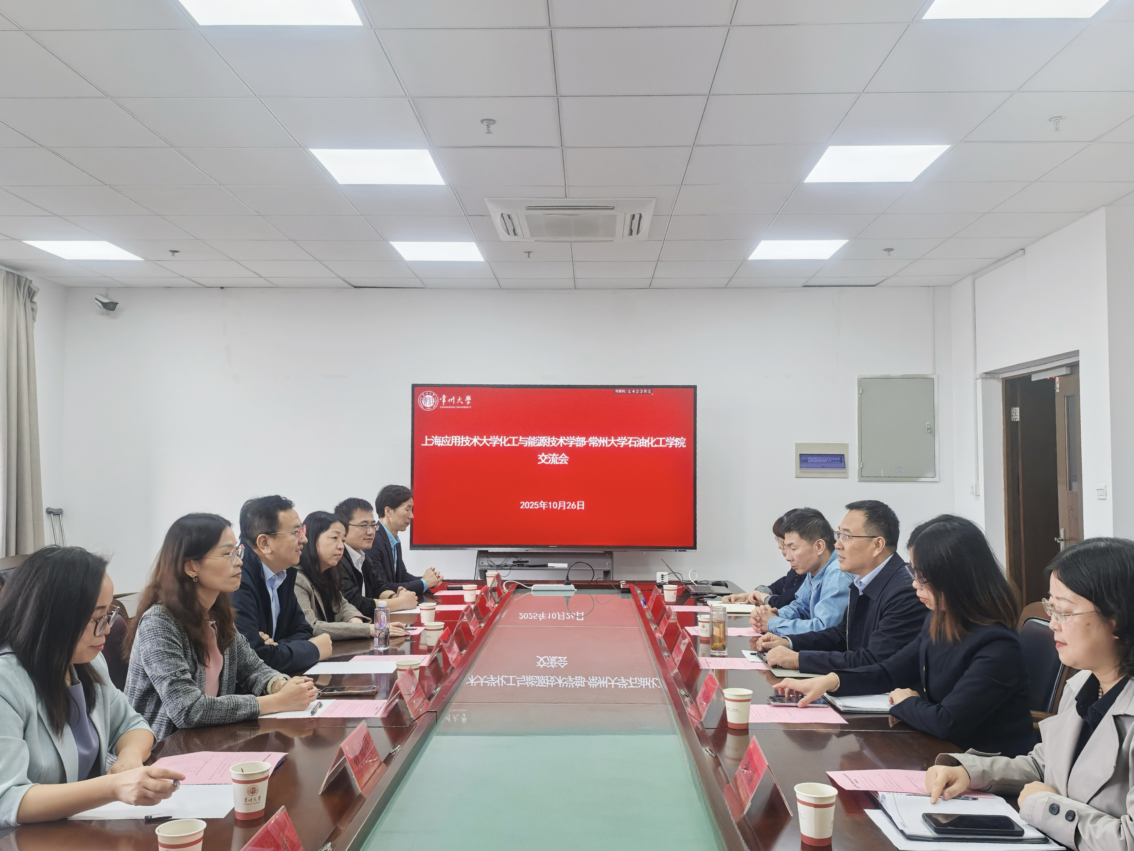 为深入贯彻落实学校综合改革要求,加快推进专业数智化转型与实验室高水平建设,2025年10月26日,上海应用技术大学化工与能源技术学部主任韩生、党委书记陈静率领班子成员、实验中心及基础教研室代表一行,赴常州大学石油化工学院开展专题学习交流。常州大学石油化工学院院长刘平、党委书记业绪华、副书记刘国仕、教学副院长黄薇等热情接待并全程参与交流。