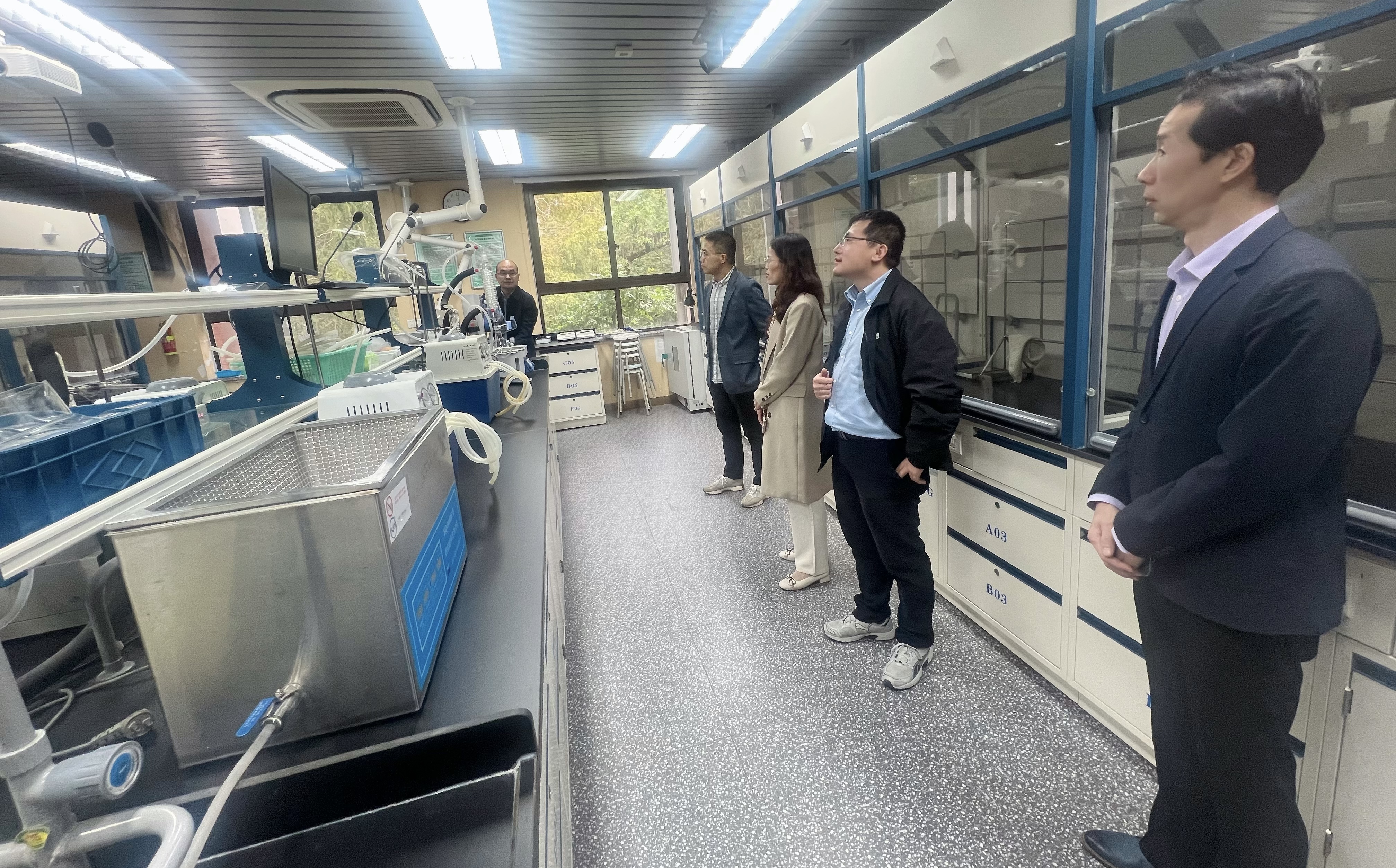 调研组由化工与能源技术学部副主任赵韵、卞明,实验中心主任陶建伟,以及本科生院副院长田甜、实践科科长许梦琦、教学秘书郑玉玲等组成。复旦大学方面,孙兴文主任、物理化学实验课程负责人刘永梅、中心主任助理刘莎莎共同参与交流。