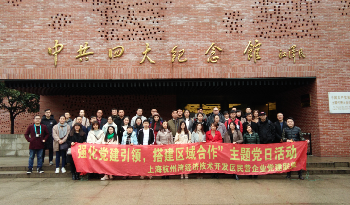 2019年2月,为切实加强上海杭州湾经济开发区区域化党建工作,更好地促进开发区园区企业发展,杭州湾开发区党委联合凯惠药业、柘林居委、上海应用技术大学化工学院教工第一党支部、西藏中驰集团、南洋高科技园区、杭馨物业、森佩福莱、精通坚成、杭州湾企业联合党支部、万溯药业、派米雷区联合党支部、清松药业以及洛兴包装14家党组织,打造杭州湾开发区民营企业区域化党建联盟,创新构建 共融共治共享共创的园区党建模式,形成大党建、大服务、大管理的格局。
