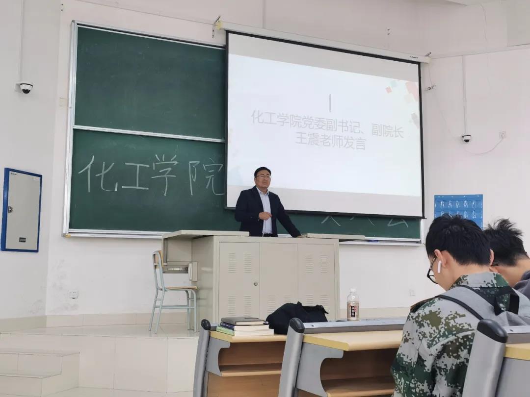 2020年11月10日中午,由化工学院学生会主办的化工学院运动会动员大会在二教I204准时开始。化工学院党委副书记、副院长王震出席并做动员讲话,大会由学院学生会体育部部长金雨晨主持。