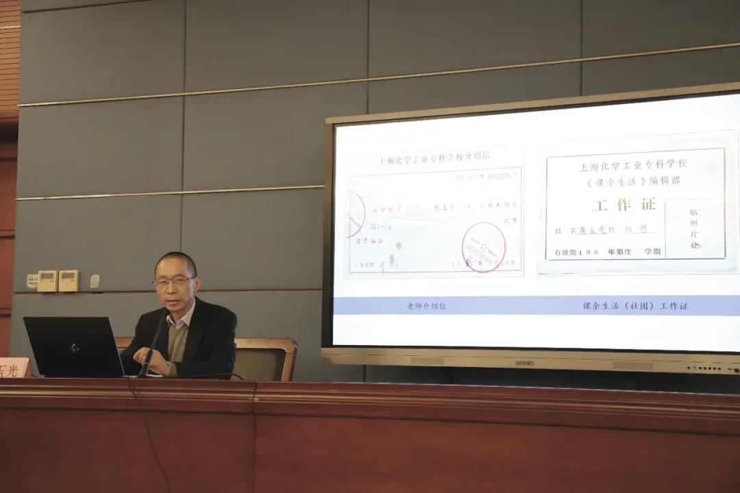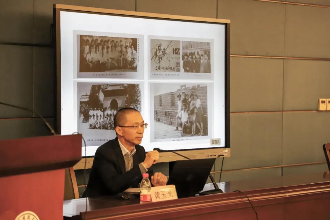 黄玉光先生首先介绍了自己年轻时的学习、工作经历,展示了许多当时的老照片,并讲述了照片背后的故事。通过老照片的展示,黄玉光先生同我们一起回顾了自身的成长与变化。他还通过浦东开发开放三十年来的巨变告诫同学们要适应时代发展与世界变化,并积极拥抱时代。
