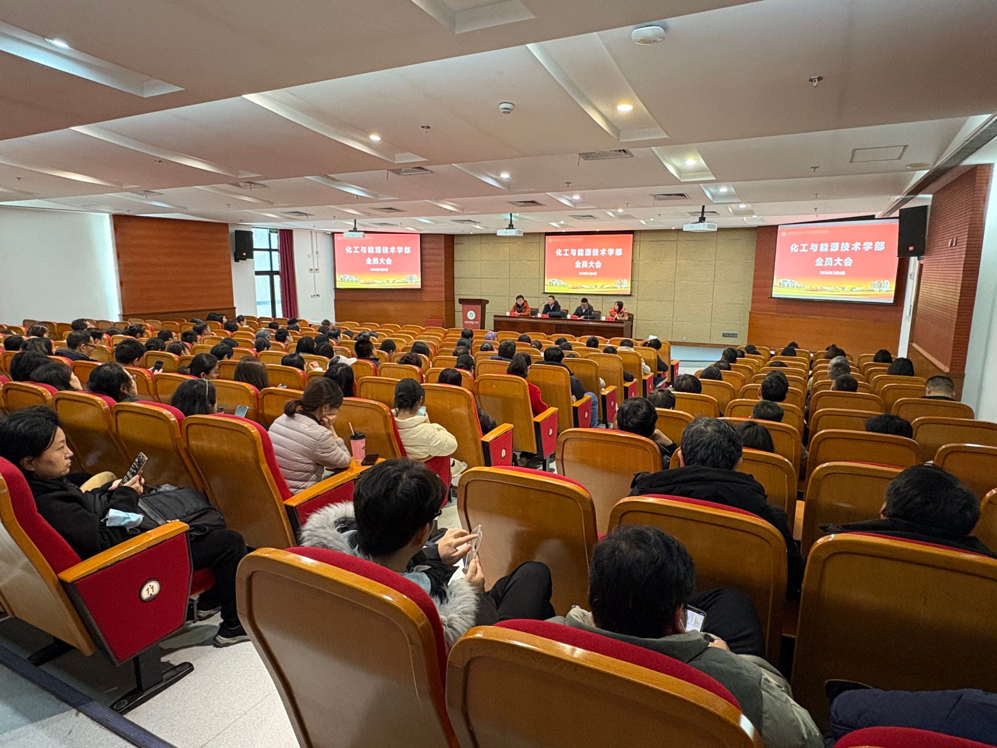 2026年3月6日下午,化工与能源技术学部在图书馆B101报告厅召开全体教职工大会,会议由学部主任韩生教授主持。本次大会正值谋划“十五五”发展规划的关键时期,学部以“抢抓战略机遇、深化改革创新”为主线,系统谋划未来五年发展路径,重点部署2026年重点工作,同步擘画“十五五”开局规划,为学部高质量发展锚定方向、凝聚共识。