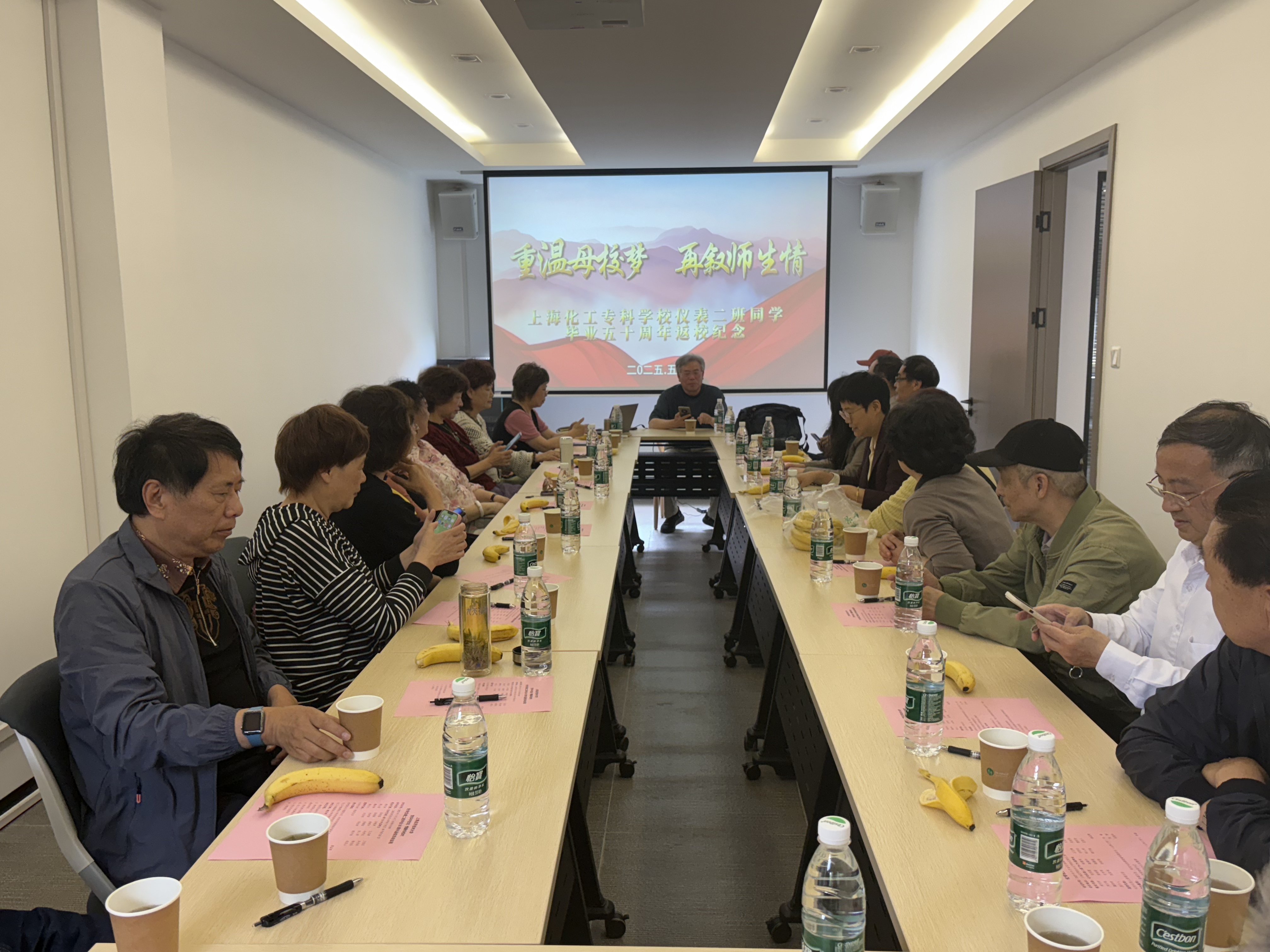 2025年5月8日,73-75届化专仪表二班校友齐聚校友之家,举行毕业50周年同学会。21位校友代表、恩师代表虞孟博及校方嘉宾党政办公室副主任、校友与发展联络处副处长朱敏、化工与能源技术学部党委书记陈静出席活动。