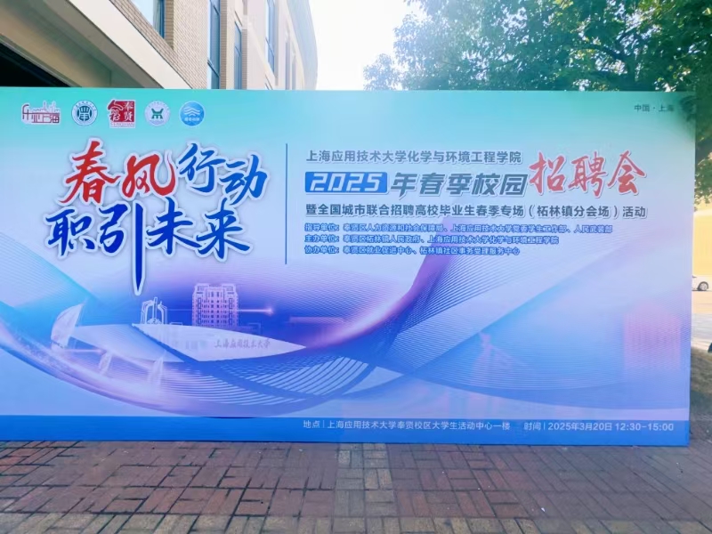为深入贯彻落实党中央、国务院对高校毕业生就业创业工作的决策部署,抓住春季促就业关键期,推动毕业生与用人单位供需紧密对接。由奉贤区人力资源和社会保障局、上海应用技术大学党委学生工作部、人民武装部指导,奉贤区柘林镇人民政府和上海应用技术大学化工学院主办,奉贤区就业促进中心和柘林镇社区事务受理服务中心协办的“春风行动 职引未来”2025年春季校园招聘会暨全国城市联合招聘高校毕业生春季专场(柘林镇分会场)于3月20日下午在大学生活动中心底楼举行。