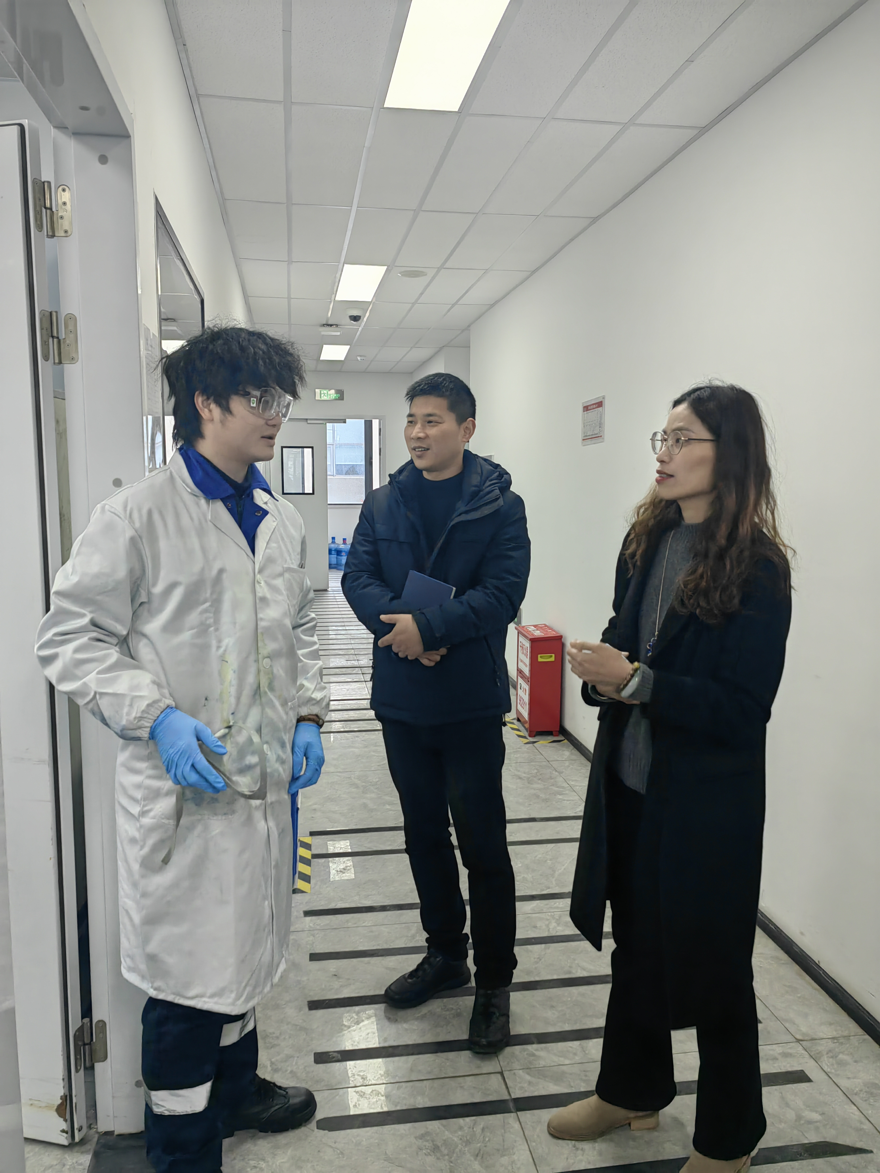 在与在岗实习学生交流时,俞俊详细了解了学生的学习、工作和生活情况,对学生在实践中展现的专业素养和综合能力予以肯定,并鼓励他们珍惜实习机会,积极就业,也希望企业能开拓更多的就业岗位。