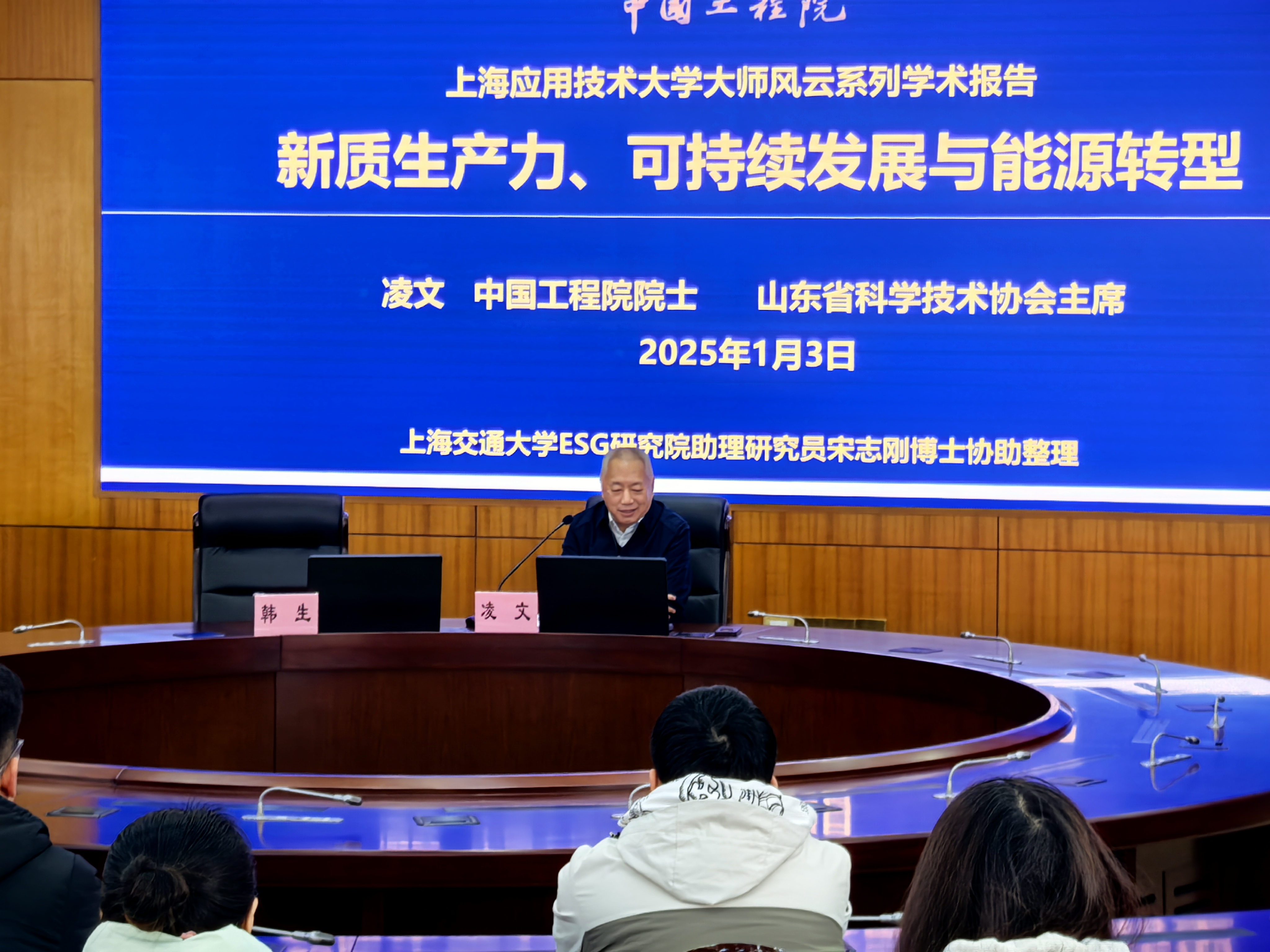 1月3日,中国工程院院士,山东省科协主席凌文应邀来我校作题为《新质生产力、可持续发展与能源转型》的学术报告。校党委副书记、纪委书记、监察专员李健亲切会见,感谢凌院士来校传经送宝,为我校师生带来前沿科学的思想碰撞与智慧启迪。报告由化学与环境工程学院院长韩生主持,相关领域教师以及研究生参加报告会。
