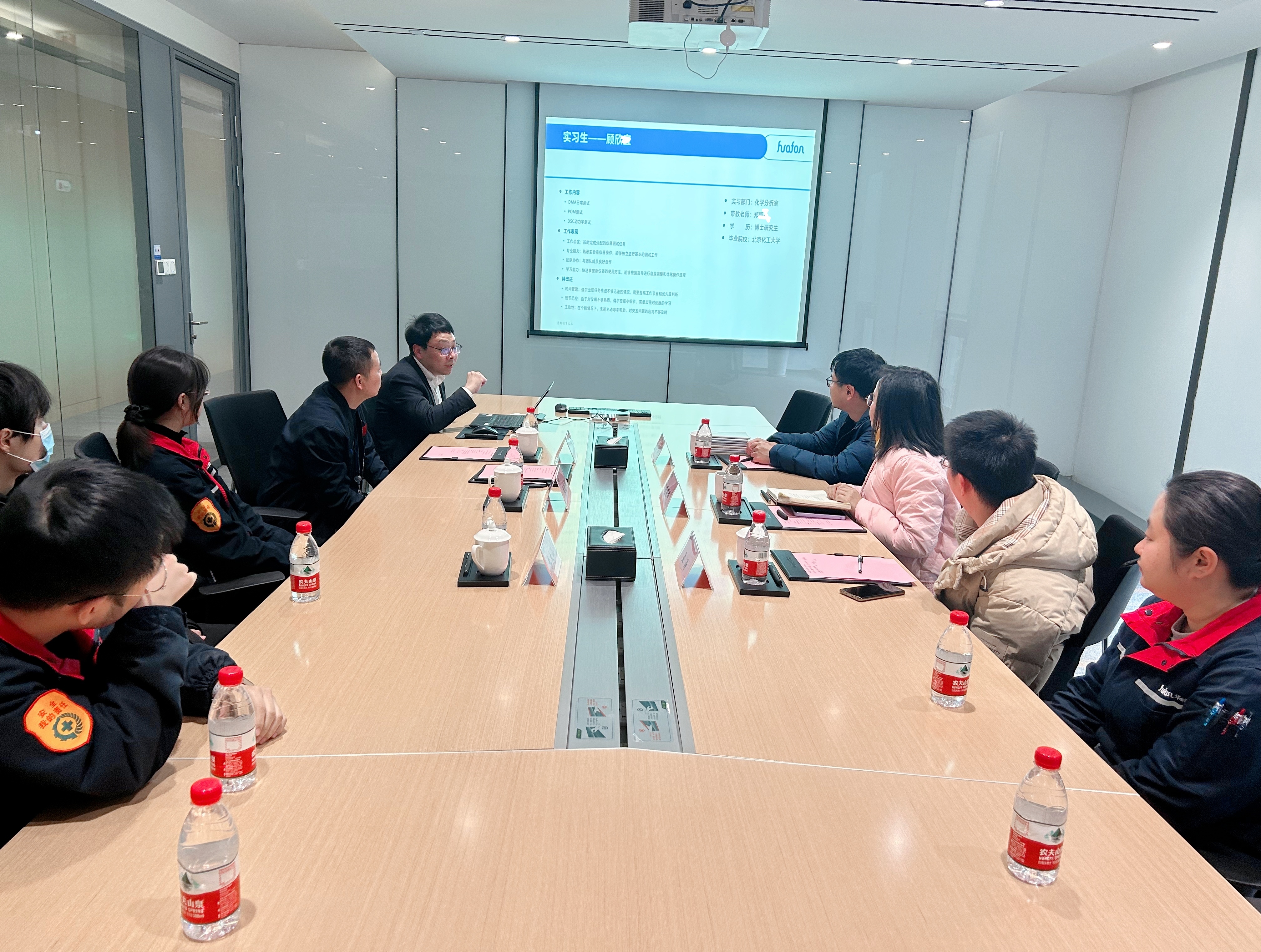 为贯彻落实教育部“访企拓岗促就业”专项行动要求,进一步提升人才培养质量,推动产教融合与学院2025届毕业生就业工作,主动对接企业需求,拓展就业渠道。2月24日下午,化学与环境工程学院党委副书记、副院长钱婷婷,化工教研室副主任孟涛,毕业班辅导员鲁琪一同前往华峰集团上海研究院开展“访企拓岗”专项活动和校企合作调研活动,华峰集团上海研究院综合管理部主任赖晓群、企业经理顾杰、人力资源经理李大山热情接待,在企业实习的5位毕业班学生一同参与活动。