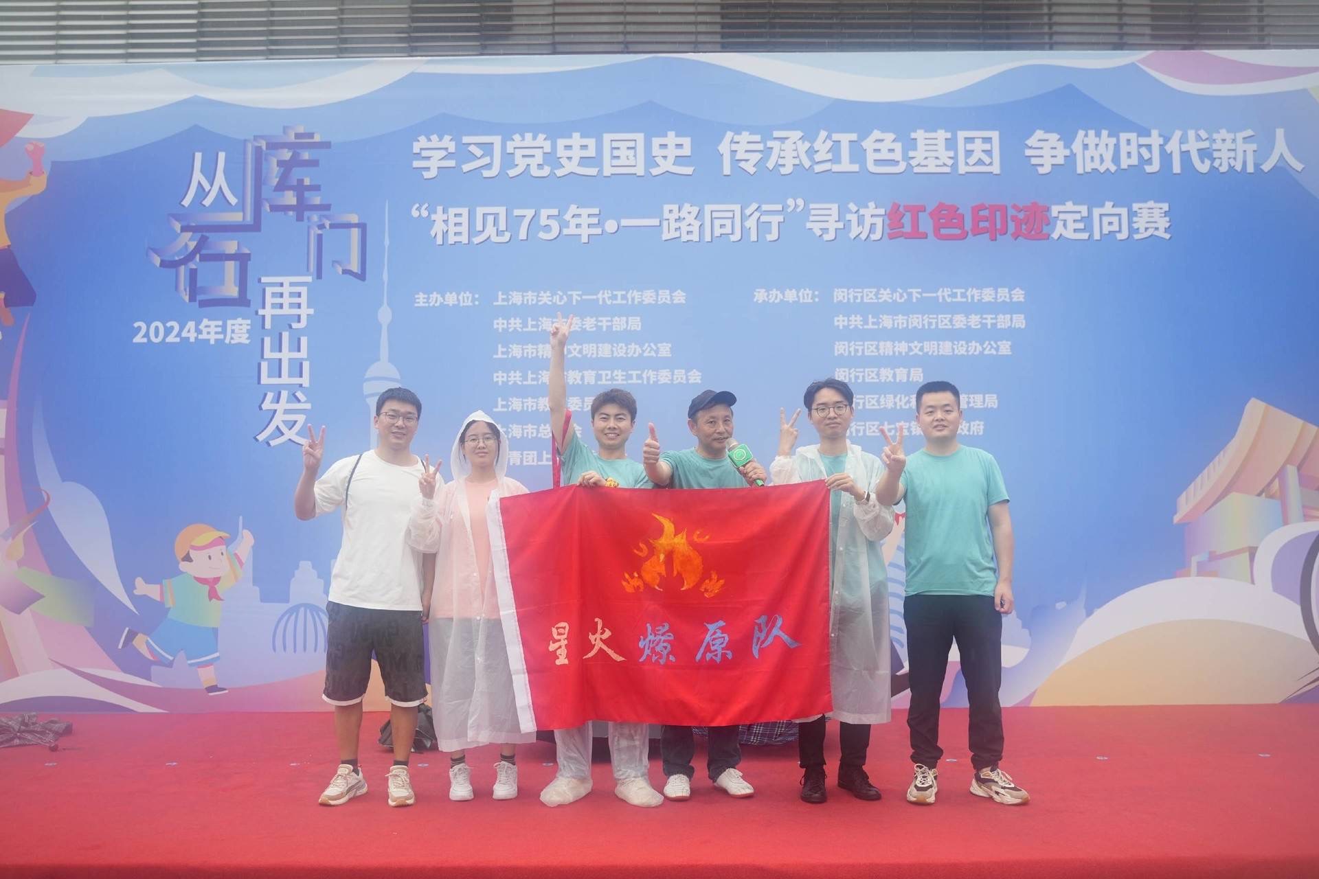 “相见75年·一路同行”寻访红色印迹定向赛,“星火燎原队”从海派艺术馆出发,打卡七号桥碉堡、廉政文化馆、万马奔腾雕塑、民防科普馆、闵行博物馆等红色遗迹和海派文化场馆,感悟当地的人文历史和红色印记,重温前辈们的苦难与辉煌,让红色基因融入血脉,让革命薪火和城市精神代代相传。最后,由上应师生代表组成的“星火燎原队”取得线下定向赛“团队活力奖”的好成绩。
