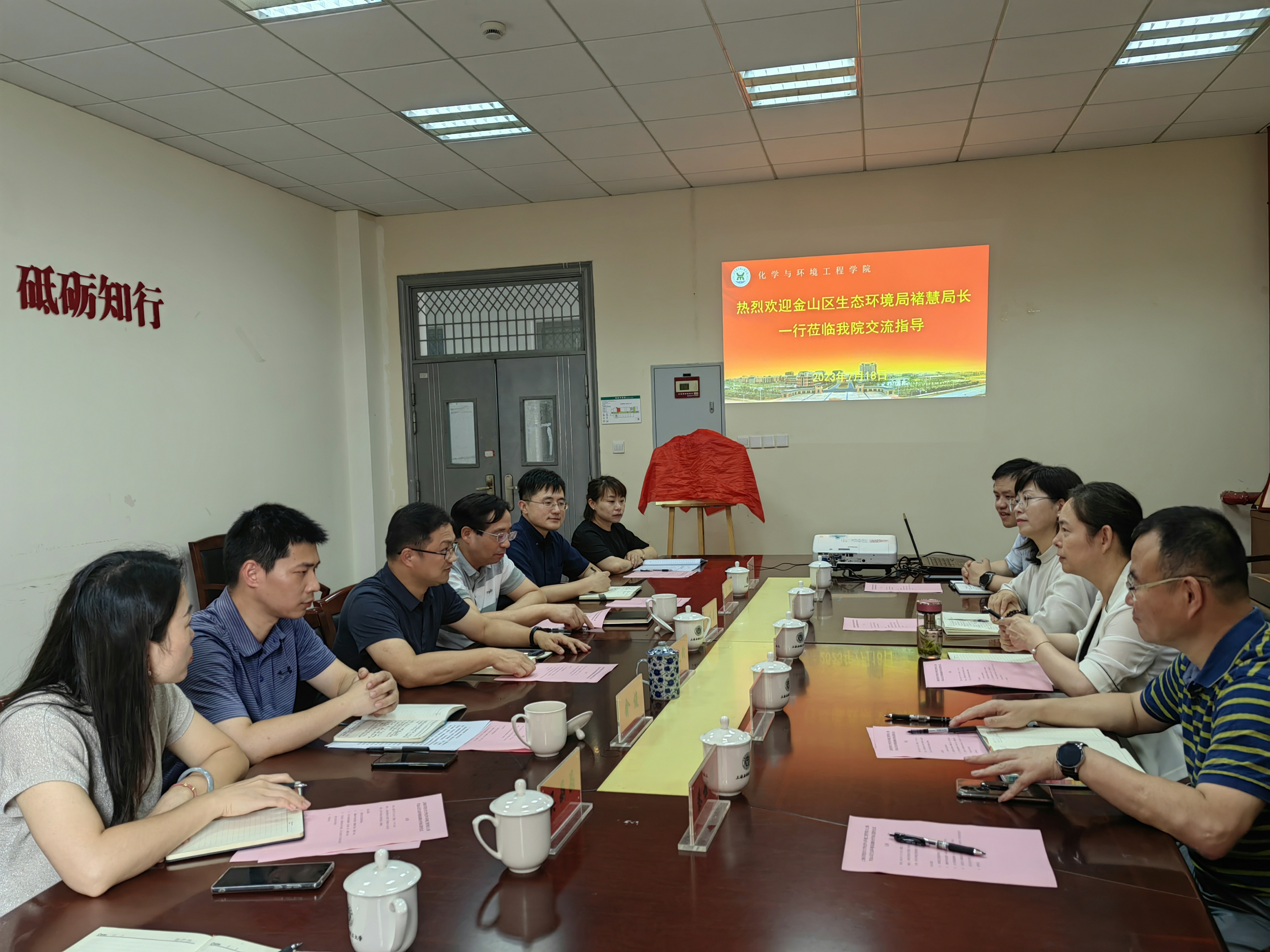 7月18日,金山区生态环境局党组书记、局长褚慧一行五人到化工学院交流并签署战略合作协议。化工学院院长胡晓钧、党委书记毛东森、副院长俞俊、吴晶晶、卞明等出席签约仪式。