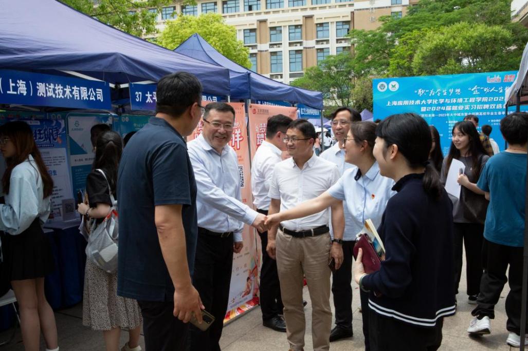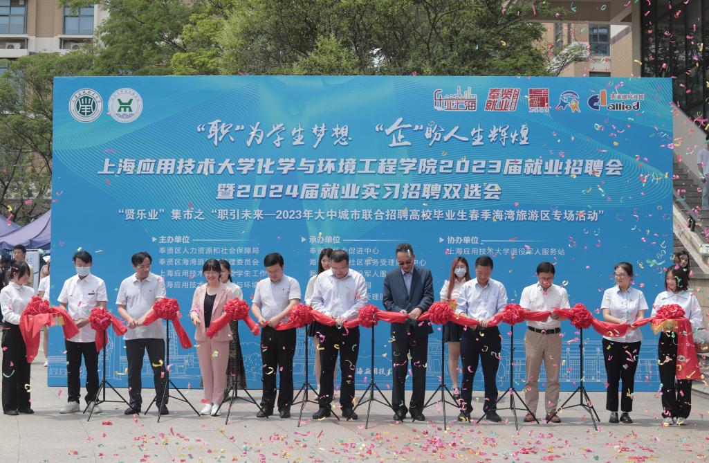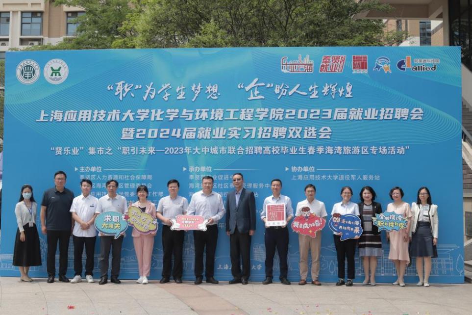校党委副书记、纪委书记李健,党委学生工作部部长袁翔,奉贤区柘林镇党委副书记翁晔,海湾旅游区管理委员会副主任王婧,以及党办、奉贤区就业促进中心代表和化工学院班子主要成员等参加了本次招聘会。