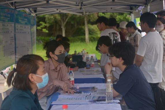 为扎实做好高校毕业生就业创业工作,进一步加强校企合作,结合主题教育工作大调研安排和“访企拓岗”专项行动要求,5月26日下午,化工学院在第三学科楼广场举办2023届就业招聘会暨2024届就业实习招聘双选会。本次活动由奉贤区人力资源和社会保障局、奉贤区海湾旅游区管理委员会、上海应用技术大学党委学生工作部和上海应用技术大学化工学院主办。本次招聘会共吸引50余家用人单位参与现场招聘,现场提供600余个岗位,覆盖医药研发、环保、智能制造等多种行业类别,吸引了众多学生。