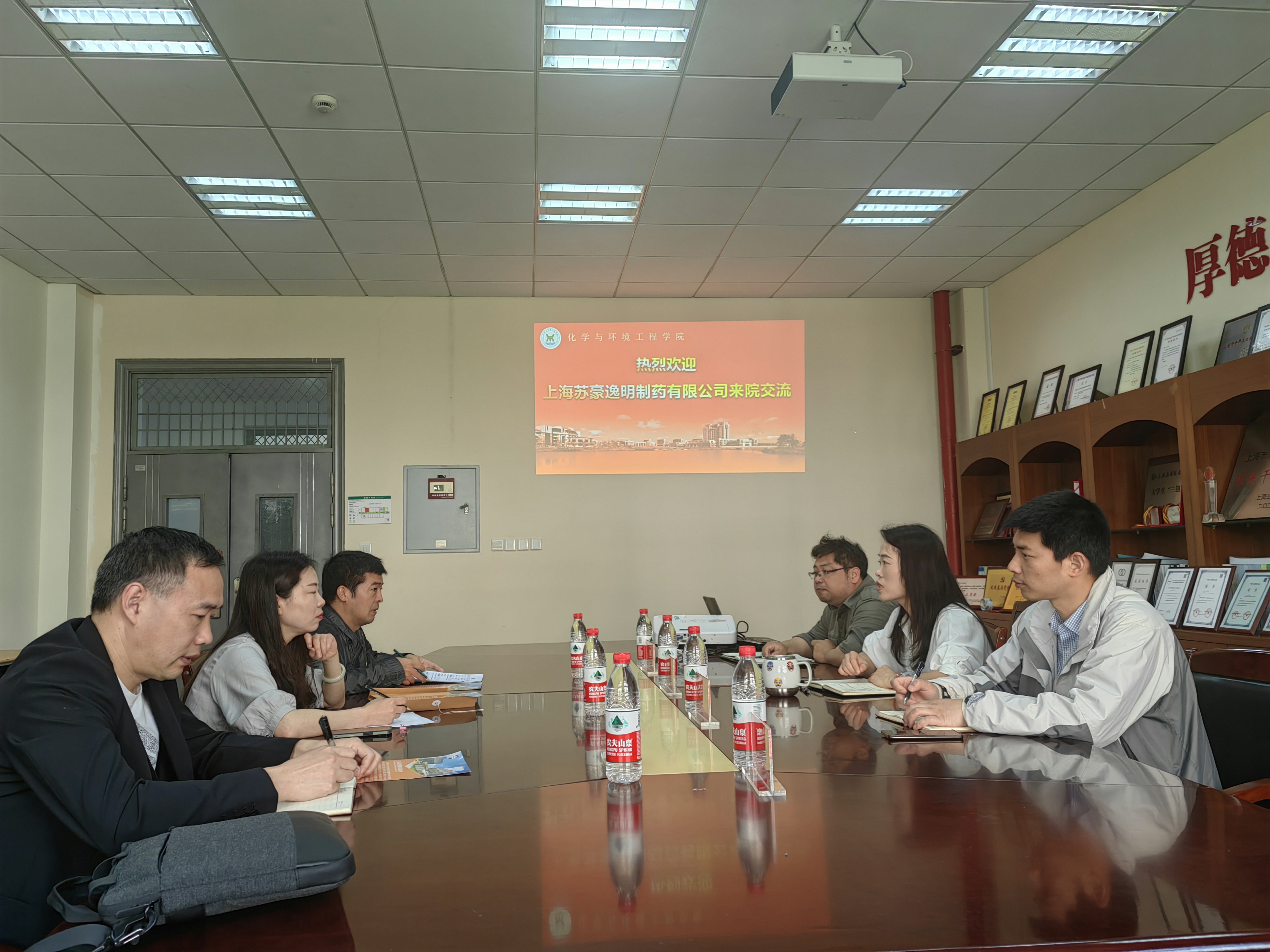 5月23日,上海苏豪逸明制药有限公司人事部经理吴映月,生产总监总监王文琪,生产中心经理刘春生到化学与环境工程学院访问交流,就产业学院建设的推进与学院副院长吴晶晶、副院长俞俊、专业教师邱丰和辅导员关颖进行了良好的交流。