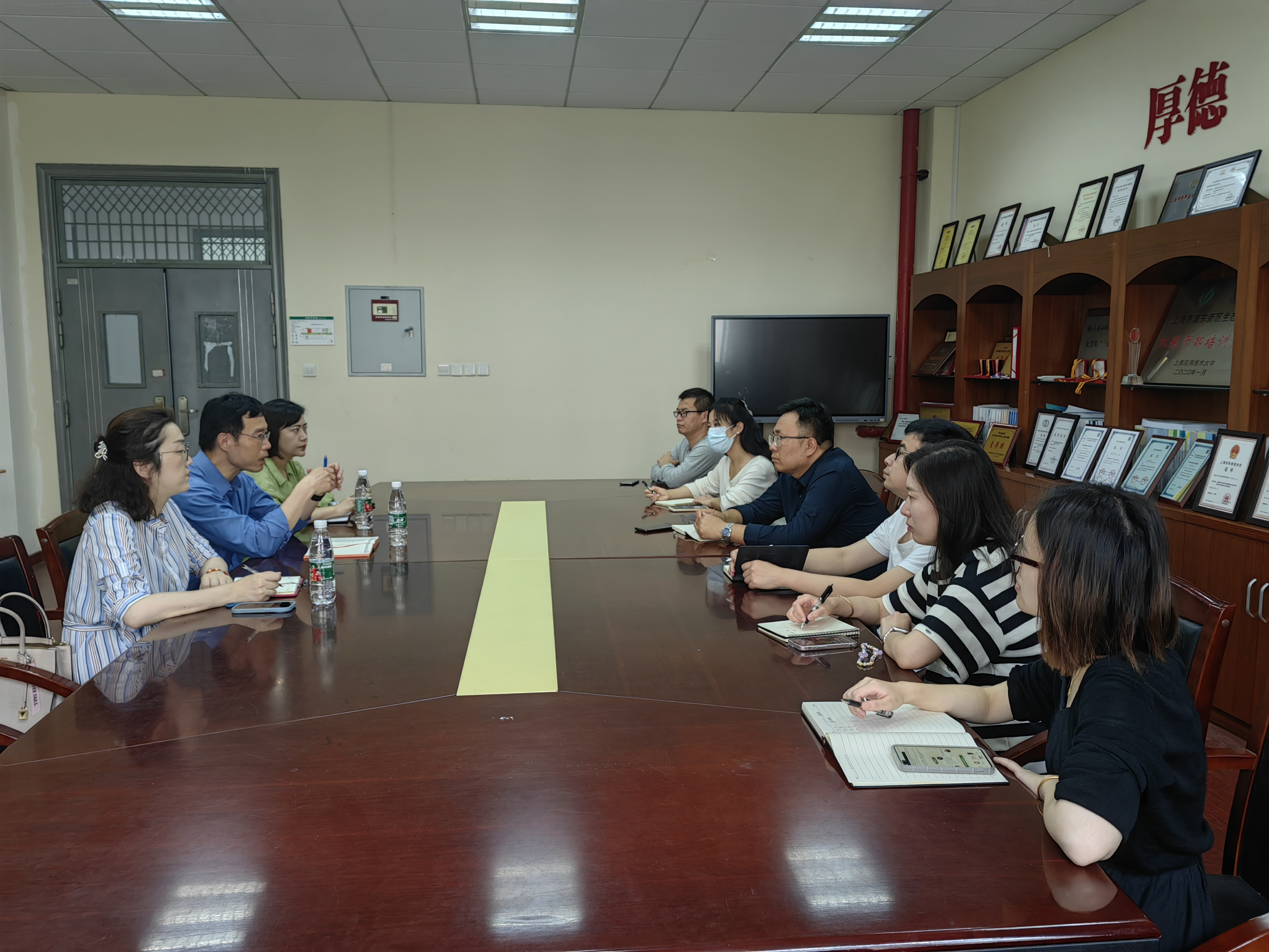 王震对黄瑜一行表示欢迎,并详细介绍了学院概况、办学特色、人才培养、专业建设等方面,以及学院在现代制药产业学院的建设现状。黄瑜对科思创聚合物(中国)有限公司基本情况、公司发展、企业文化、业务范围等方面作了介绍。