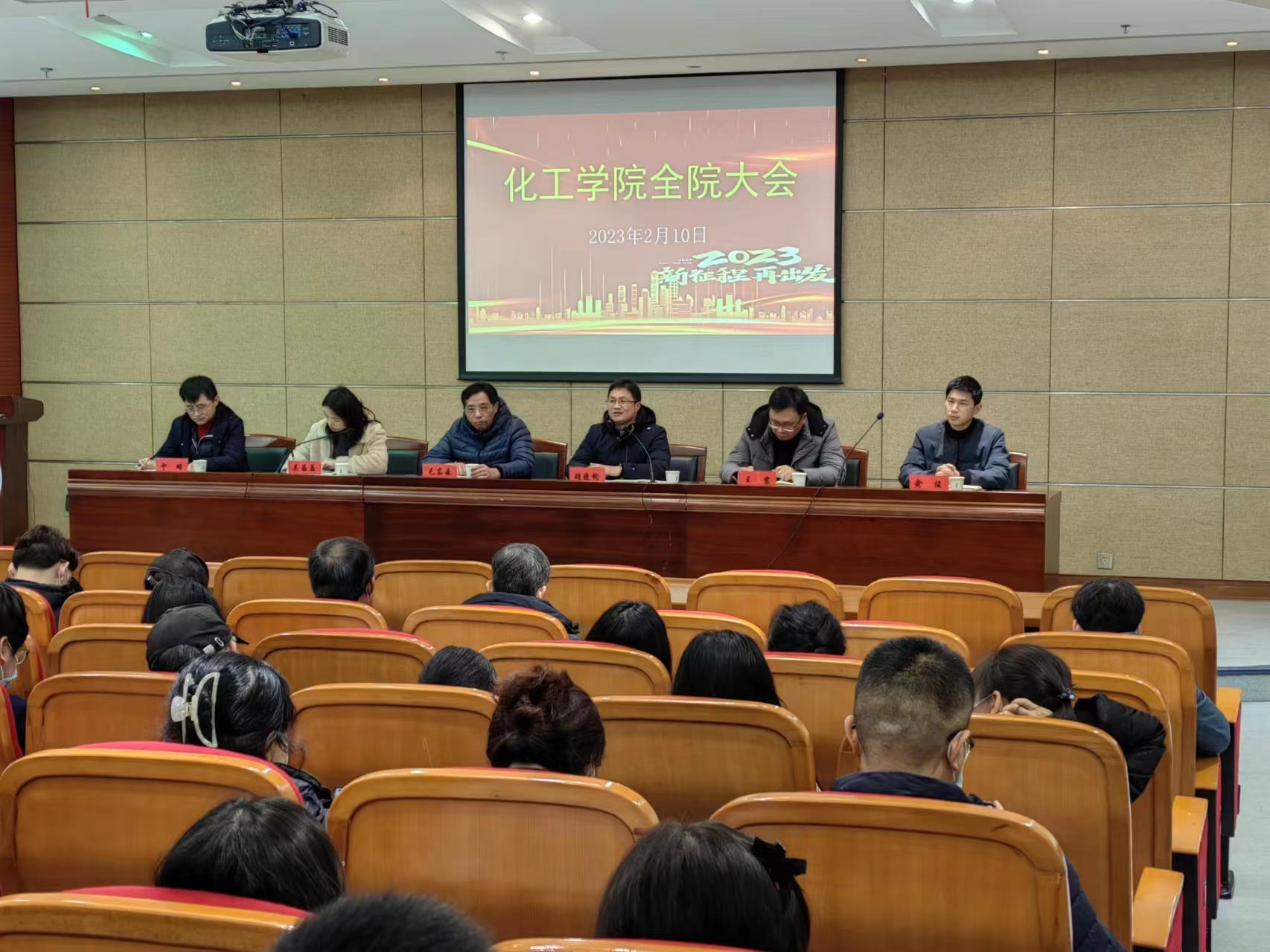 胡晓钧首先通报了2022年度学院总体考核第一的成绩以及各个条线的考核名次,感谢全体教职工的辛勤付出;对2022-2025年聘期考核方案做出了详细解释,希望教职工在新的聘期里取得更好成绩;最后展望学院发展思路与成效,十四五期间学院将以博士点建设、现代绿色制药产业学院建设、国际化为重点工作高质量发展。