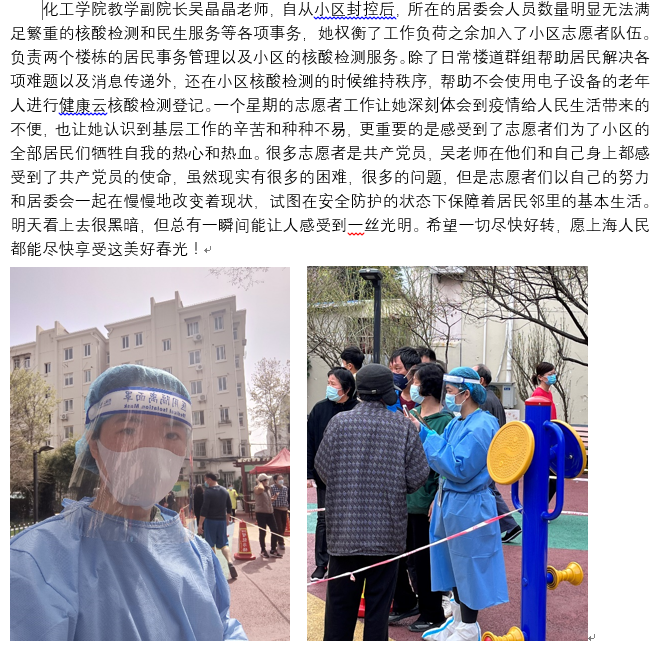 化工学院疫情防控期间党员事迹案例