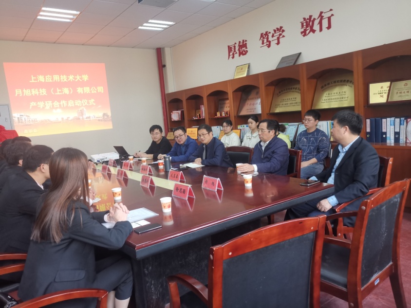 会上,双方签订了产学研合作协议、“月旭”奖学金的捐赠协议,并为“上海应用技术大学-月旭科技(上海)股份有限公司联合实验室”揭牌。双方的合作为发挥各自资源优势,将科研成果变成现实生产力提供了平台。以后,双方将加大交流学习,既要为学院科研发展提供实习实践、为学生提供资源和帮助,又可以引领企业快速发展共同努力,携手共进!