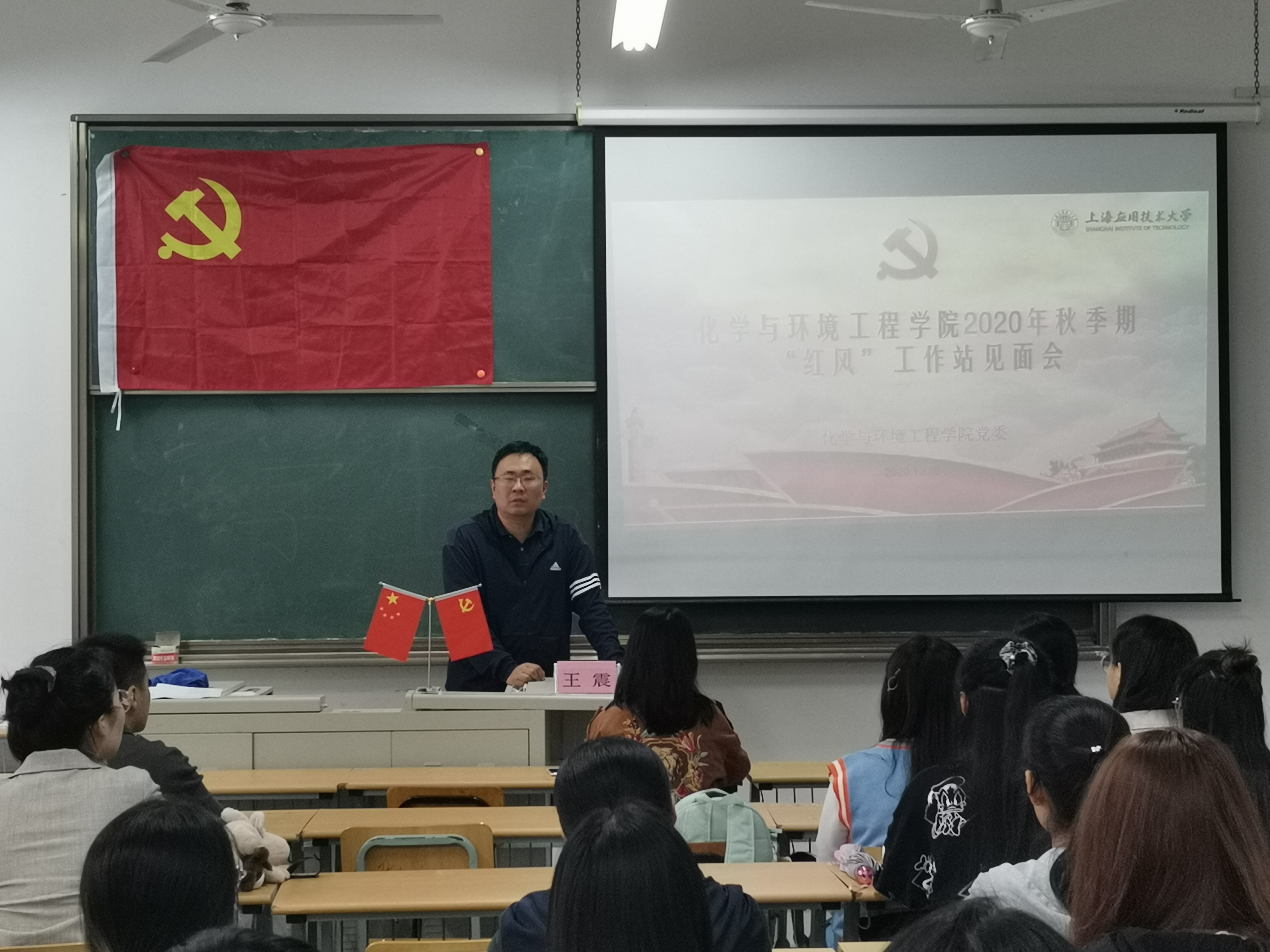 见面会上,院党委副书记、副院长王震讲述了自己对于化工红风工作站中“红风”二字的理解:“红”代表着党 ,而“风”意味着党员的服务对象全覆盖于人民群众。勉励学生党员们要将党员的奉献精神、服务意识传递给更多向党组织积极靠拢的学生。随后,学院组织员邹璇老师在见面会上也分享了红风工作站成立背后的故事。她希望通过红风工作站的建设,做到层层递进,“一进一出”,充分发挥党员“老带新”作用。最后, “红风”工作站部长团在会议的最后上台与大家见面,分享了接下来各个部门的主要工作内容。