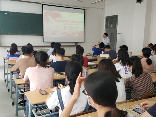 化工学院党委书记毛东森,为全体毕业生党员带来了“不忘初心跟党走、立德树人做先锋”专题党课。毛东森书记寄语要化工学院全体党员提高政治站位,把人民放在心中最高的位置,并将这份感情融入工作,善待同事,把职业当事业,把使命当生命,把梦想当信仰。