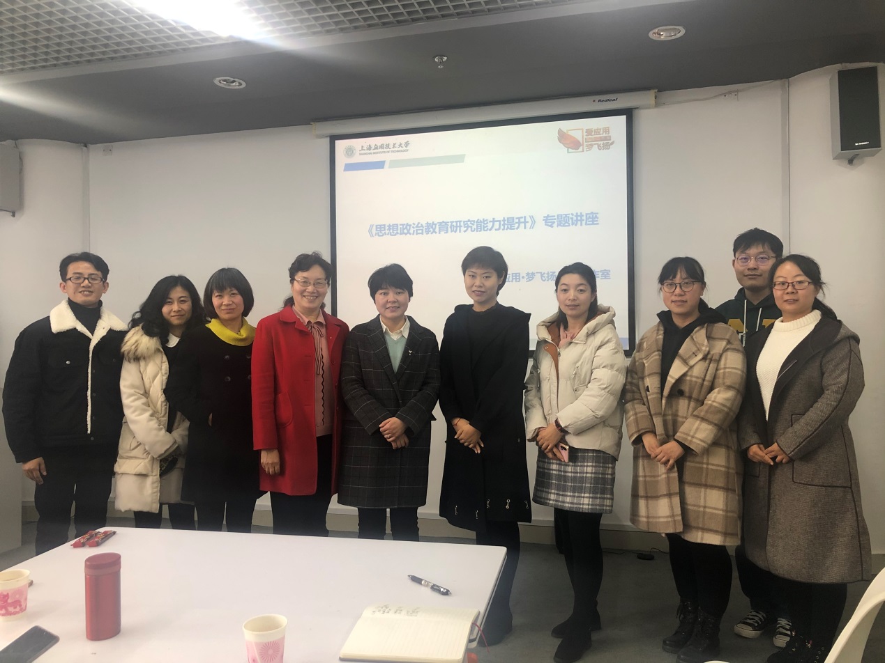 1月6日,我校辅导员“爱应用.梦飞扬”生涯工作室在奉贤校区大学生活动中心224为工作室成员开展了《思想政治教育研究能力提升》专题讲座,讲座邀请到了上海大学环境与化学工程学院党委副书记马成瑶教授作为主讲嘉宾。马教授曾担任专职一线辅导员16年,论文及各类科研研究近40项;曾获2012年上海市辅导员年度人物,2018年度阳光学者;2次获得全国高校辅导员工作优秀论文奖、4次获得上海高校辅导员工作优秀论文奖。