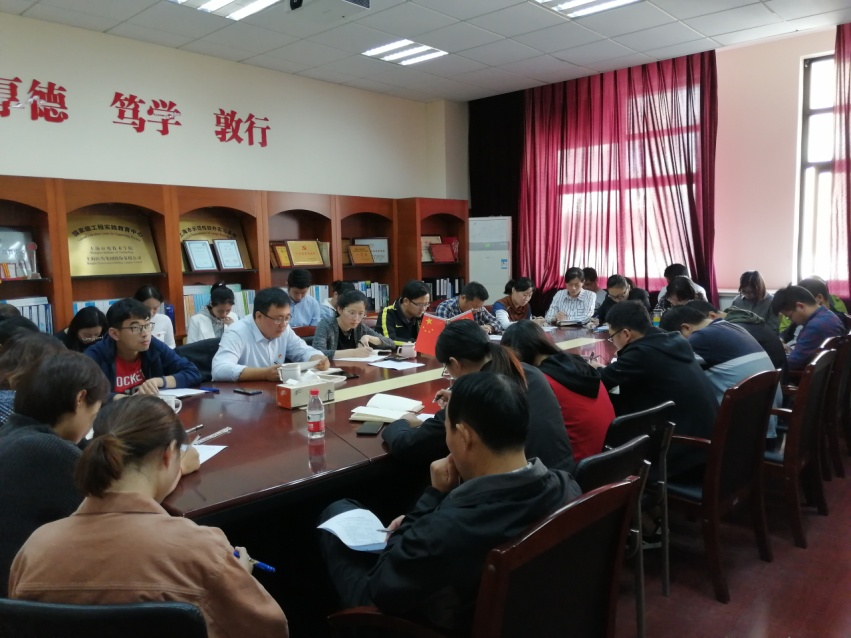 1016日,化工学院召开“不忘初心牢记使命”主题教育,深刻学习习近平总书记论教育工作重要讲话精神。会议由化工学院党总支副书记、副院长王震主持,化工学院党支部书记、辅导员、班导师以及部分教师参与学习。