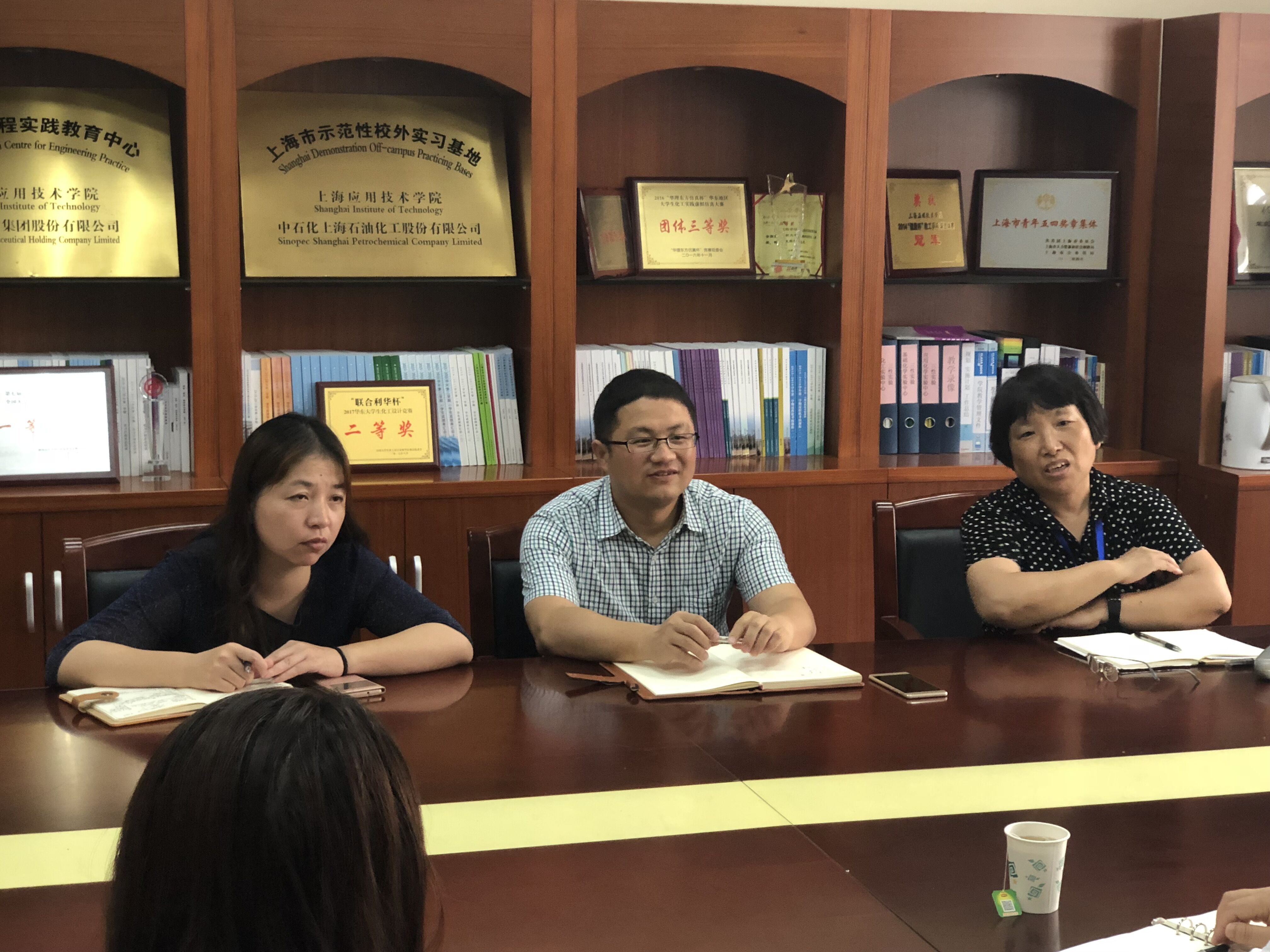 2018年7月4日,海湾旅游区工作委员会书记王秋萍、办公室主任平珏、副主任钱成来访我校化学与环境工程学院,化工学院党总支书记孙小玲、院长胡晓钧、副书记、副院长陈静接待王秋萍一行。