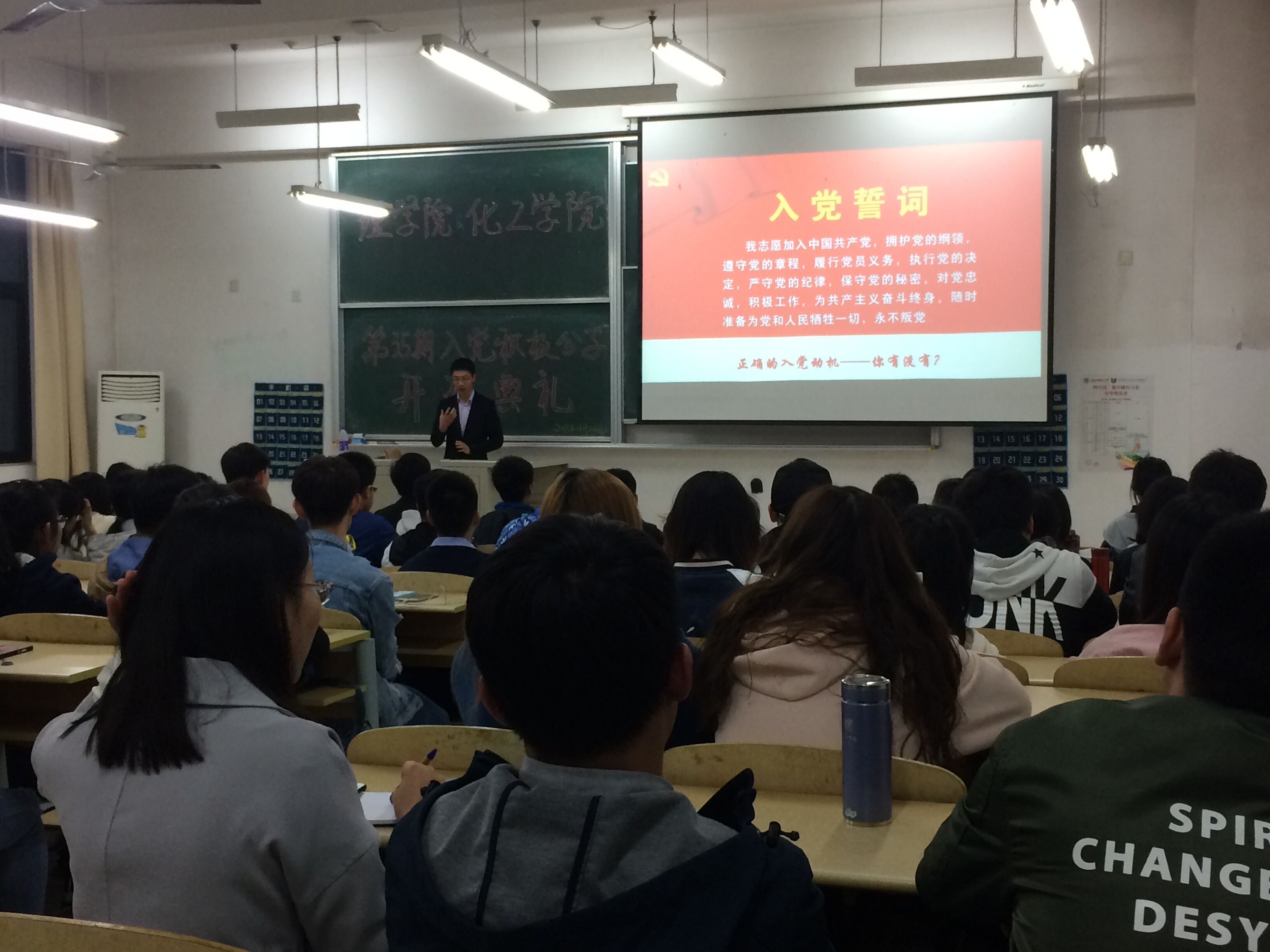 2018年4月26日化工学院和理学院的第35期党校积极分子培训班正式开班。理学院马皓老师、化工学院张雅聪老师、社会主义学院张星老师以及第35期党校积极分子培训班学员出席开班典礼。