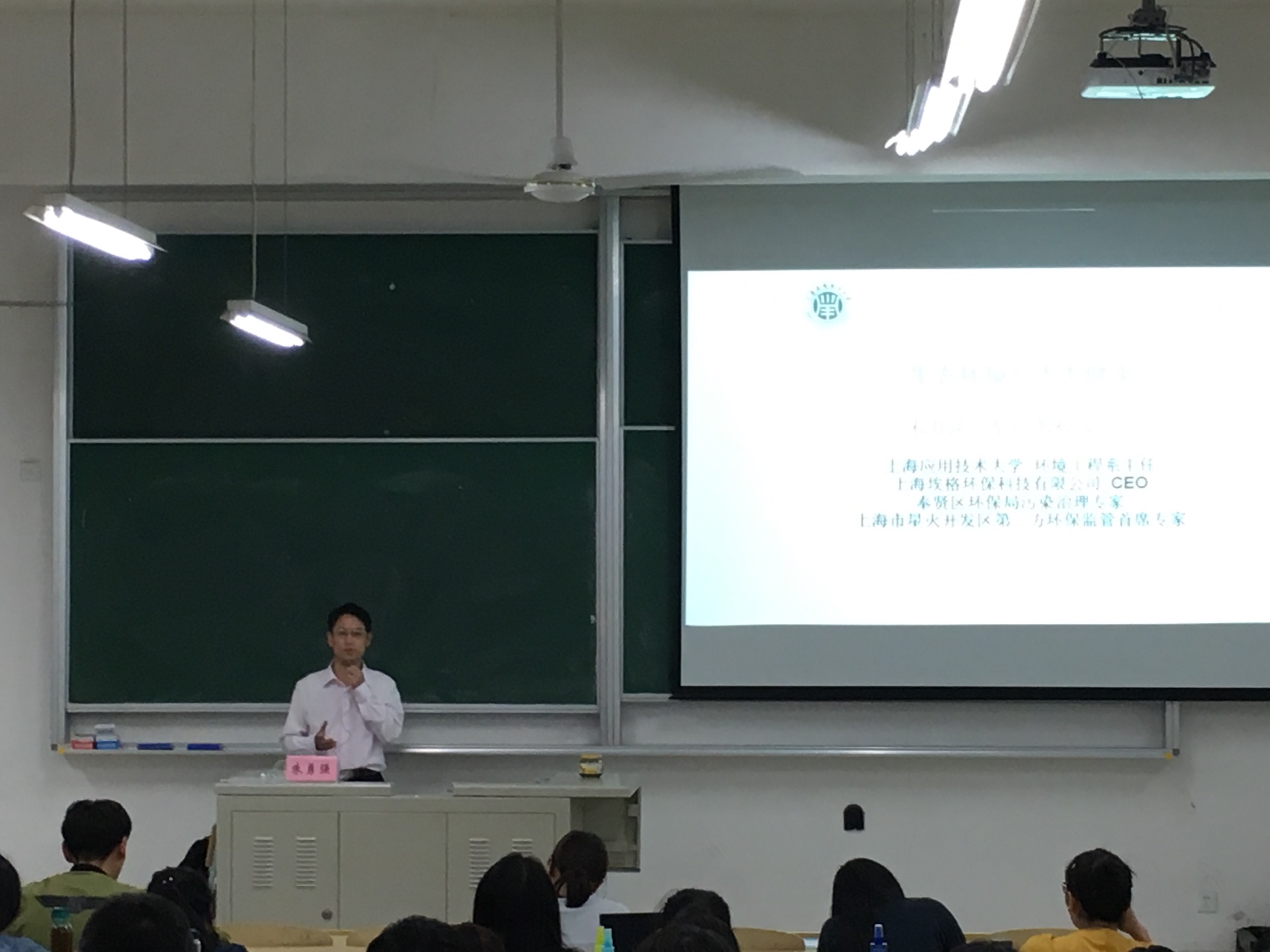 本次讲座适逢第46届环境日,讲师团由教研室高级职称的老师们组成,特别邀请环境工程专业带头人、副校长陈东辉教授进行讲座,本次讲座围绕“水资源、大气、固体废弃物、可持续发展、环境十三五政策解读、废物资源化、人与自然和谐发展、环境与健康”八个方面开展讲座,讲座紧贴当下形式,不少年度热词如“河长制”、“退二进三”、“蓝天保卫战”等成了讲师着重解释的对象。不少同学也在讲座后与老师进行讨论。
